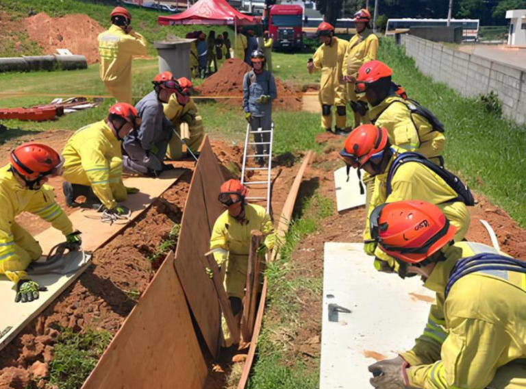 Por fim, na base de escoramento, os bombeiros utilizam madeira ou metal para evitar a queda de mais terra.