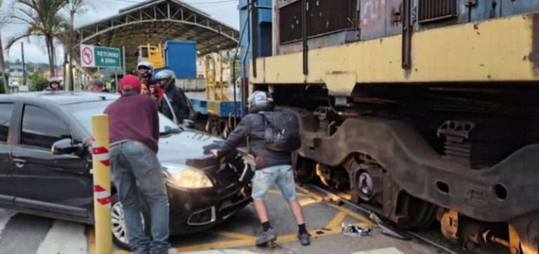 Um carro de passeio foi atingido por um trem de serviço na noite desta quarta-feira (17), em Louveira. O acidente aconteceu quando o veículo tentou atravessar a linha férrea no momento em que o trem se aproximava.