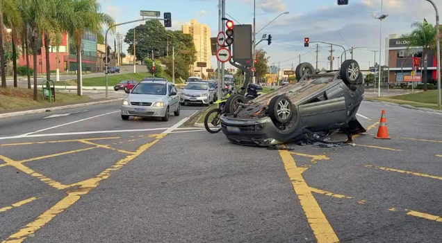 Seis pessoas ficam feridas após carro capotar em avenida de Jundiaí