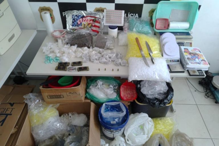 Durante a ação, foram apreendidos cerca de 7,6 quilos de entorpecentes, entre maconha, crack e cocaína. Além das drogas, os agentes também encontraram três balanças de precisão, um rádio comunicador e materiais utilizados para embalar os produtos.