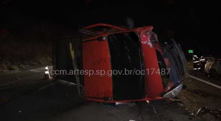 De acordo com a Agência de Transportes do Estado de São Paulo (Artesp), o veículo atingiu inicialmente um carro, que capotou e foi parar no canteiro central. Mesmo após a colisão, o motorista seguiu na pista e bateu contra uma caminhonete, que acabou tombando.